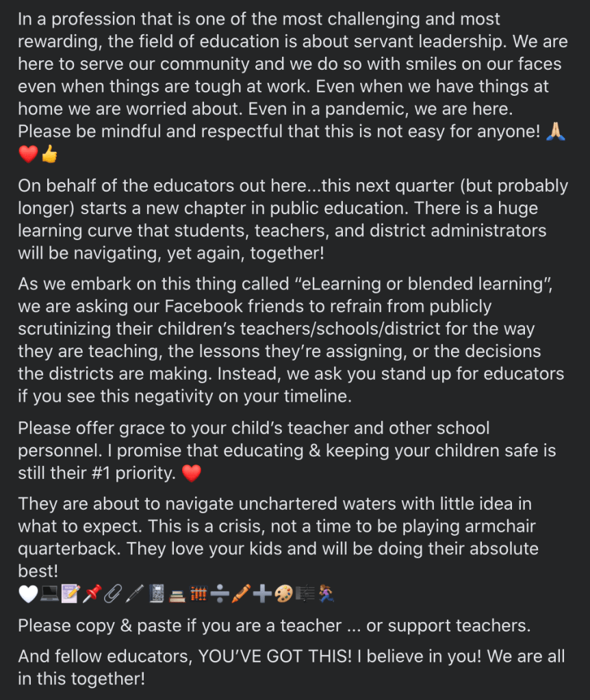 As the pandemic continues, give school districts and teachers grace, by coming alongside your school districts.